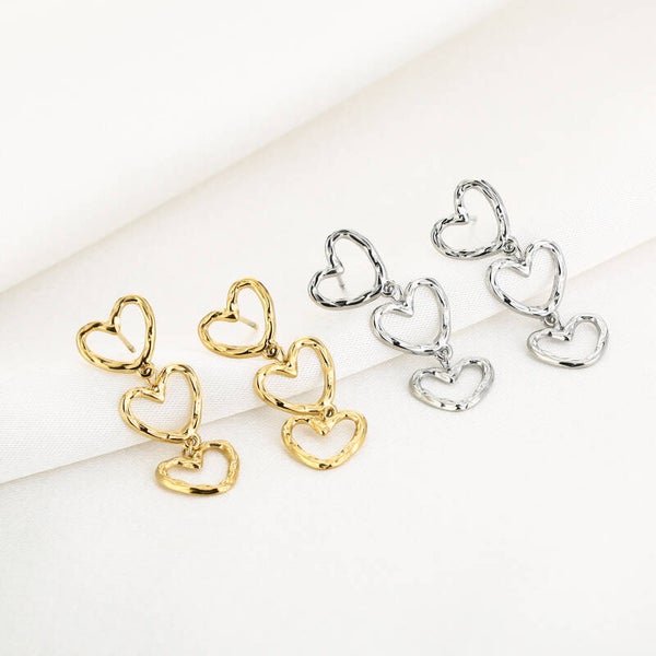 Triple hearts oorbellen goud
